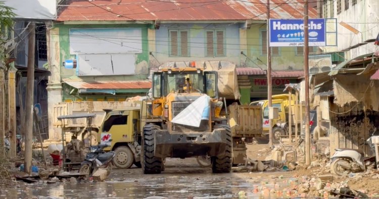 Pantauan di lapangan pada Selasa (23/12) menunjukkan alat berat dengan roda besi intens berlalu-lalang membelah tumpukan lumpur yang cukup tebal. Meski deretan ruko dan rumah warga masih tampak sepi karena sebagian besar bangunan masih tergenang sisa pembersihan, geliat mobilitas warga sudah mulai terlihat.