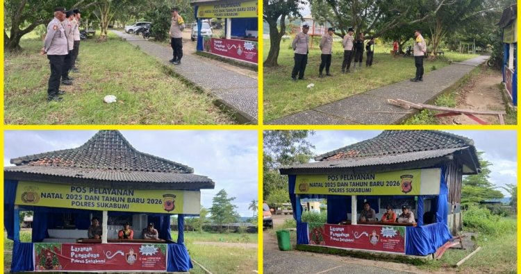 Ciemas – Dalam rangka Operasi Lilin Lodaya 2026, Kapospam Pantai Palangpang Ciwaru Ciemas Geopark Ciletuh, AKP Deni Miharja, S.H., M.H., memimpin apel dan pelaksanaan pengamanan di Pos Pelayanan Wisata Pantai Palangpang, Kamis (1/1/2026) sore.