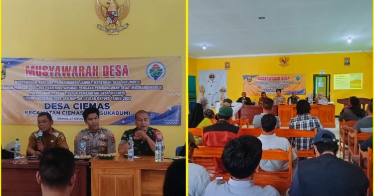 Ciemas – Dalam upaya mendukung sinergitas antara kepolisian dan pemerintah desa dalam pembangunan wilayah, Bhabinkamtibmas Desa Ciemas Polsek Ciemas Polres Sukabumi, Bripda Raihan Ramy Sihara Ahsar, menghadiri kegiatan Musyawarah Perencanaan Pembangunan Desa (Musrenbangdes) Tahun Anggaran 2026, yang dilaksanakan di Aula Kantor Desa Ciemas, Kecamatan Ciemas, Kabupaten Sukabumi, pada Senin (27/10/2025).