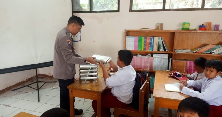 Nyalindung – Bhabinkamtibmas Desa Mekarsari Polsek Nyalindung, Bripka Agung bersama Briptu Erdian melaksanakan kegiatan monitoring pelaksanaan Program Makan Bergizi Gratis di SDN Caringin, Kampung Caringin, Desa Mekarsari, Kecamatan Nyalindung, Kabupaten Sukabumi, pada Senin (13/10/2025).