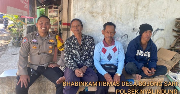 Sukabumi - Polsek Nyalindung terus meningkatkan komunikasi dan kedekatan dengan masyarakat melalui kegiatan Door To Door System (DDS). Bhabinkamtibmas Desa Bojongsari Bripka Agus melaksanakan DDS di Kampung Babakan RT 004/003, Desa Bojongsari, Kecamatan Nyalindung, Kabupaten Sukabumi.