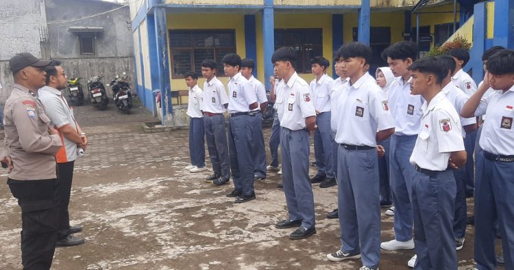 Parungkuda – Bhabinkamtibmas Desa Sundawenang, Aipda Untung S, melaksanakan kegiatan himbauan kamtibmas kepada para siswa SMK Dwi Darma, Senin (20/10/2025).