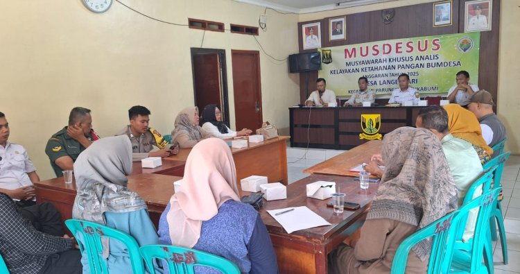Parungkuda – Bhabinkamtibmas Desa Langensari Brigpol Rahmat Aditya bersama Babinsa Sertu Bubun menghadiri kegiatan Musyawarah Desa Khusus (MUSDESUS) terkait penetapan program ketahanan pangan Desa Langensari, Kecamatan Parungkuda, Kabupaten Sukabumi, pada Rabu (03/12/2025) bertempat di Aula Kantor Desa Langensari.