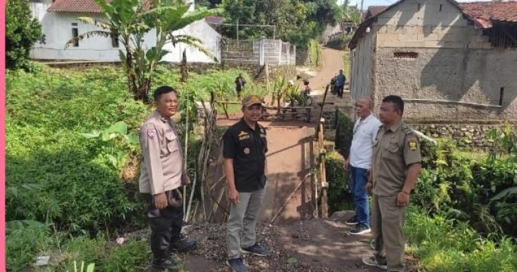 Cikembar – Bhabinkamtibmas Desa Cimanggu bersama jajaran Polsek Cikembar melakukan pengecekan rubuhnya jembatan penghubung antara Desa Cimanggu dan Desa Sukamulya akibat hujan deras dengan intensitas tinggi, Senin (03/11/2025).