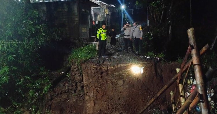 Sukabumi, 2 November 2025 – Kapolsek Cikembar IPTU Yadi Suryadi, S.H., M.Si bersama anggota turun langsung ke lokasi robohnya jembatan penghubung antara Desa Sukamulya dan Desa Cimanggu, Kecamatan Cikembar, Kabupaten Sukabumi, pada Minggu malam (2/11/2025). Jembatan tersebut ambruk akibat hujan dengan intensitas tinggi yang mengguyur wilayah tersebut sejak siang hari.
