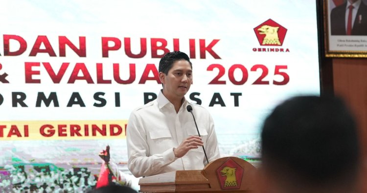 Wakil Ketua Umum DPP Partai Gerindra Budisatrio Djiwandono meresmikan perangkat lunak Masgar AI di DPP Partai Gerindra, Ragunan, Pasar Minggu, Jakarta Selatan, Rabu (26/11/2025). Budi mengatakan, hadirnya Masgar AI sebagai bentuk keterbukaan informasi partai politiknya kepada publik yang hendak mencari tahu seputar parpol berlambang burung garuda tersebut.