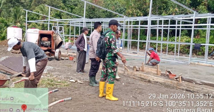 Keempat, di Nagari Puluik–Puluik (IV Nagari Bayang Utara, Pesisir Selatan). Pembangunan memasuki tahap pendirian rangka utama. Struktur memanjang sudah berdiri di atas lantai dasar dan proses perakitan rangka masih berlangsung.