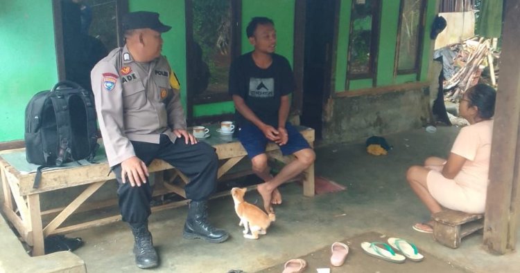 Bripka Ade, Bhabinkamtibmas Desa Mekarjaya, Kecamatan Kabandungan, melaksanakan kegiatan sambang desa dan Door to Door System (DDS) bersama warga setempat.