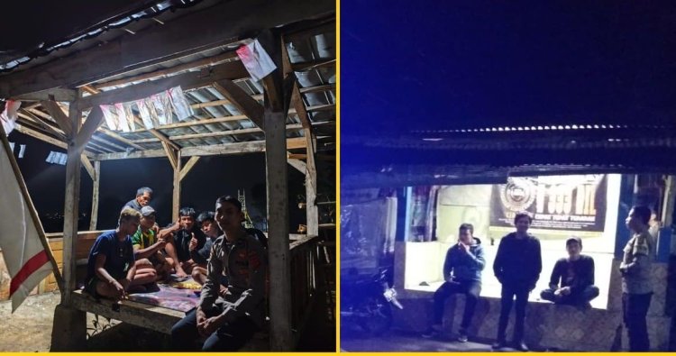 Personel Polsek Cidahu melaksanakan kegiatan sambang pengamanan swakarsa (Satkamling) di Pos Satkamling Desa Pasirdoton, wilayah hukum Polsek Cidahu, pada Rabu malam (24/12/2025).
