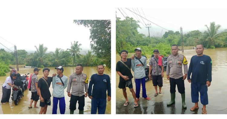 Kapolsek Ciemas AKP Deni Miharja, S.H., M.H. bersama Bhabinkamtibmas Desa Mekarsakti melaksanakan monitoring dan pengecekan pasca hujan lebat di wilayah Kecamatan Ciemas, Kamis (15/1/2026). Kegiatan difokuskan pada luapan Sungai Cikalong yang mengakibatkan Jalan Provinsi penghubung Mekarsakti–Ciwaru, tepatnya dari Cidahon hingga Babakanjati, tidak dapat dilalui kendaraan karena genangan air setinggi lutut orang dewasa. Dalam kesempatan tersebut, Kapolsek Ciemas mengimbau warga agar waspada terhadap cuaca ekstrem dan potensi bencana alam seperti banjir, longsor, pohon tumbang, dan abrasi, serta saling menjaga keselamatan terutama bagi kelompok rentan. Warga juga diminta mengetahui titik evakuasi terdekat dan tidak mudah terpengaruh informasi hoaks yang dapat menimbulkan kepanikan.