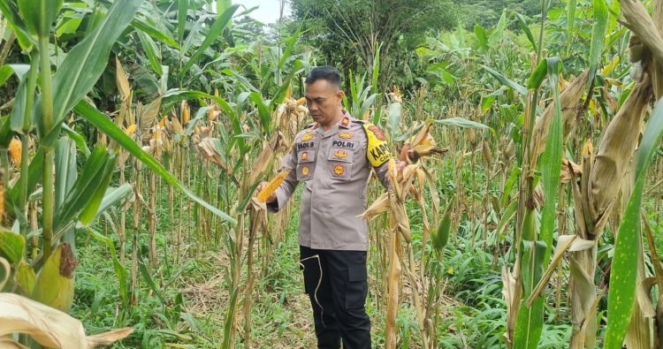 Kapolsek Cikembar IPTU Yadi Suryadi, S.H., M.Si bersama Bhabinkamtibmas Desa Cikembar Bripka Eni K. turun langsung ke lapangan untuk memantau tanaman jagung hibrida yang dikelola di lahan seluas 1 hektare milik Ibu Bania Gulo Gulo di Kampung Pupunjul.