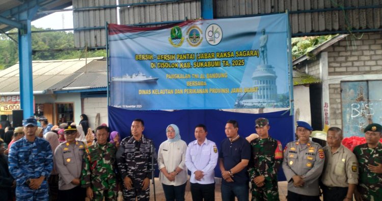 Sukabumi — Kapolsek Cisolok Polres Sukabumi menghadiri kegiatan bersih-bersih pantai dalam program “Jabar Raksa Sagara” Tahun 2025 yang diselenggarakan oleh TNI Angkatan Laut Bandung bekerja sama dengan Dinas Kelautan dan Perikanan Provinsi Jawa Barat. Kegiatan berlangsung pada Selasa (18/11/2025) sekitar pukul 08.00 WIB di Pantai Pajagan, Desa Cikahuripan, Kecamatan Cisolok, Kabupaten Sukabumi.
