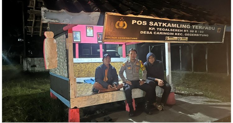 Gegerbitung – Bhabinkamtibmas Polsek Gegerbitung, Aipda Dadang Suhendar dan Bripda Fahril, melaksanakan kegiatan sambang dan kontrol Pam Swakarsa (Satkamling) di Pos Satkamling Tegalsereh Rt. 08/Rw. 03, Desa Caringin, Senin malam (22/12/2025) pukul 22.00 Wib hingga selesai.