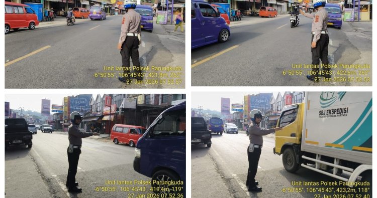 Parungkuda – Unit Lalu Lintas Polsek Parungkuda Polres Sukabumi melaksanakan pengaturan arus lalu lintas di Pasar Parungkuda dan Simpang Stasiun Parungkuda, Selasa (27/1/2026) pukul 07.30 WIB.