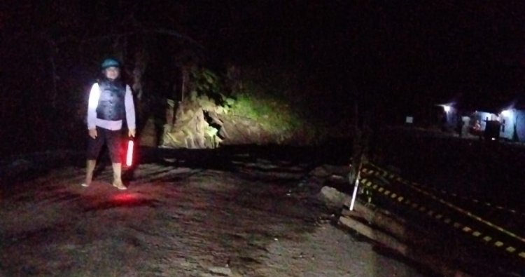 Material longsoran menutupi seluruh bahu jalan sehingga akses lalu lintas tidak dapat dilalui baik kendaraan roda dua maupun roda empat. Sebelumnya, di lokasi yang sama telah terjadi pergerakan tanah yang mengakibatkan jalan retak dan amblas sepanjang kurang lebih 8 meter, sehingga sempat dibersihkan secara gotong royong oleh warga.