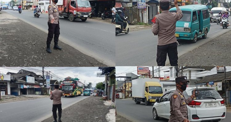 Dalam rangka Operasi Lilin Lodaya 2025, Pospam Caringin Polres Sukabumi melaksanakan kegiatan pengaturan lalu lintas (Gatur Lalin) di sekitar Simpang Caringin hingga Simpang Cibolang, Kabupaten Sukabumi, Rabu (31/12/2025).