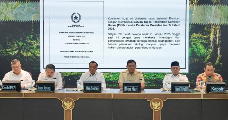 “Berdasarkan laporan tersebut, Bapak Presiden mengambil keputusan untuk mencabut izin 28 perusahaan yang terbukti melakukan pelanggaran, ” kata Menteri Sekretaris Negara, Prasetyo Hadi, saat memimpin konferensi pers Satgas PKH, di Kantor Presiden, Jakarta, Selasa (20/1).
