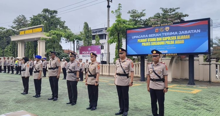 Polres Sukabumi melaksanakan Upacara Serah Terima Jabatan (Sertijab) Pejabat Utama (PJU) dan Kapolsek jajaran bertempat di Halaman Mapolres Sukabumi, Sabtu (3/1/2026) pagi.
