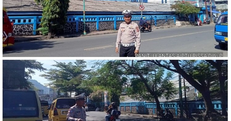 Palabuhanratu – Kapolsek Palabuhanratu Kompol Fery Poloso, SH bersama anggota Unit Lantas melaksanakan kegiatan penjagaan dan pengaturan arus lalu lintas di beberapa titik rawan kemacetan, Selasa (04/11/2025).